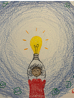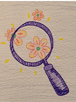 Hand som pekar på ett laminerat informationskort med en illustrerad modell av familj och nätverk, med figurer och pilar som visar relationer